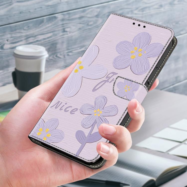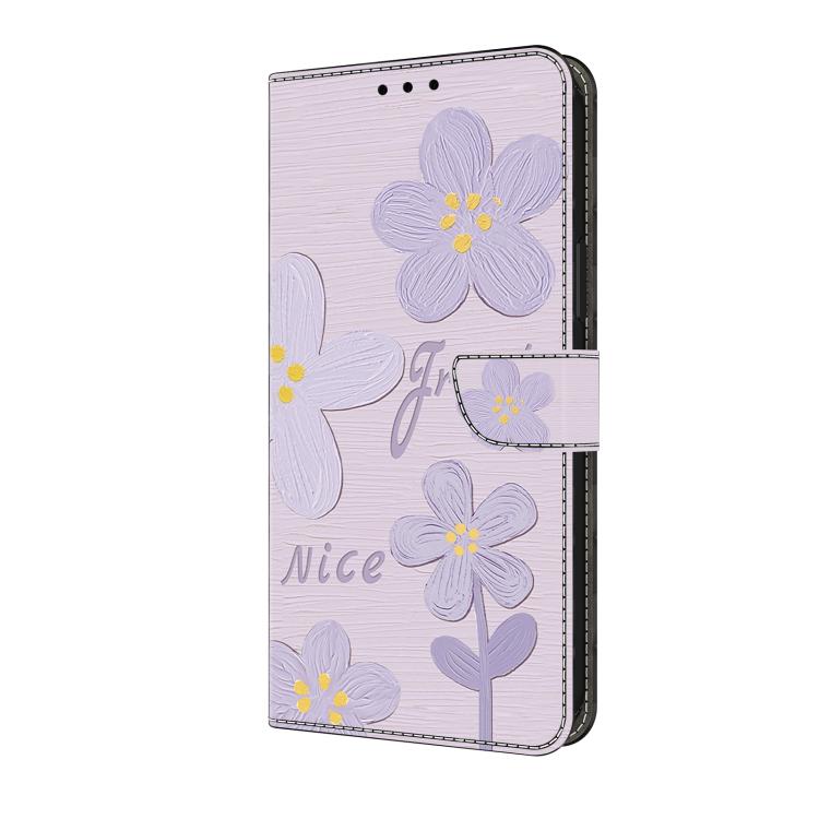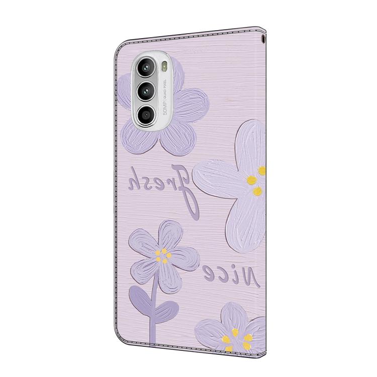 Funda de Cuero Pintada a Mano Motorola Moto G52 con Flores (Morado Oscuro)