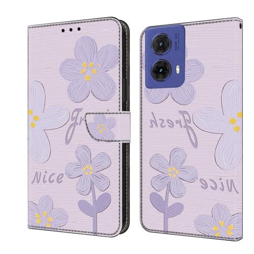 Funda de Cuero Pintada a Mano Motorola Moto G85 con Flores (Morado Oscuro)