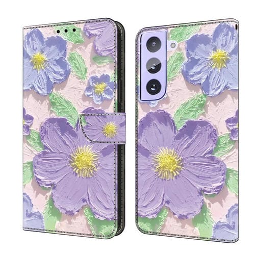 Funda de Cuero Samsung Galaxy S21 5G Pintada al Óleo Flores Moradas