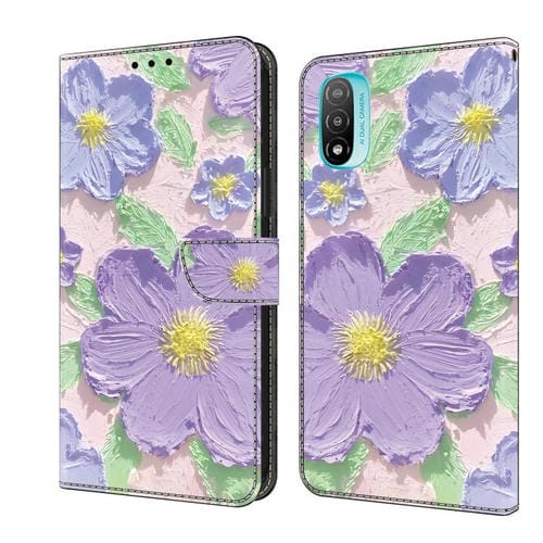 Funda de Cuero Pintada al Óleo para Motorola Moto E20 (Flores Moradas)
