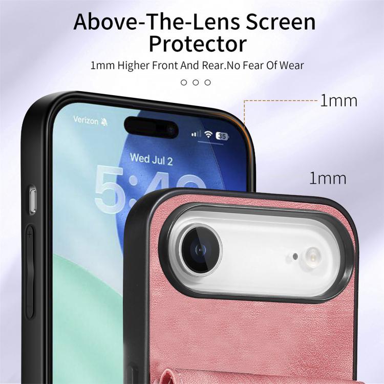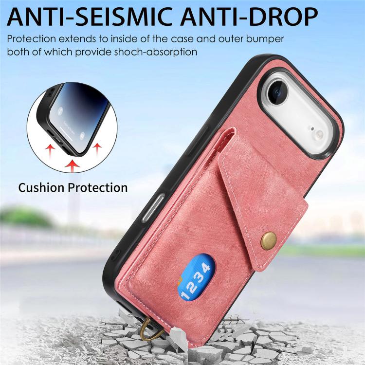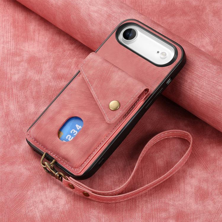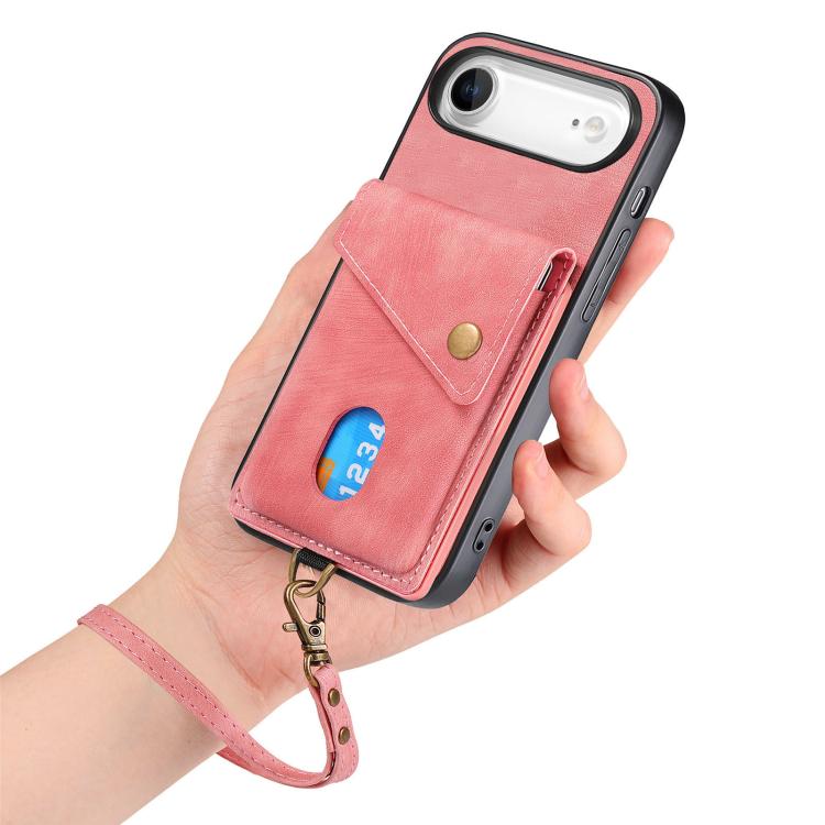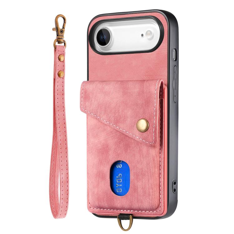 Funda de cuero plegable con correa para iPhone Air, estilo retro, con tarjetero (rosa)