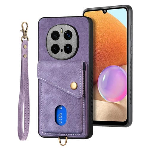Funda de Cuero Plegable con Correa y Tarjetero para Honor Magic7 Pro (Morado)