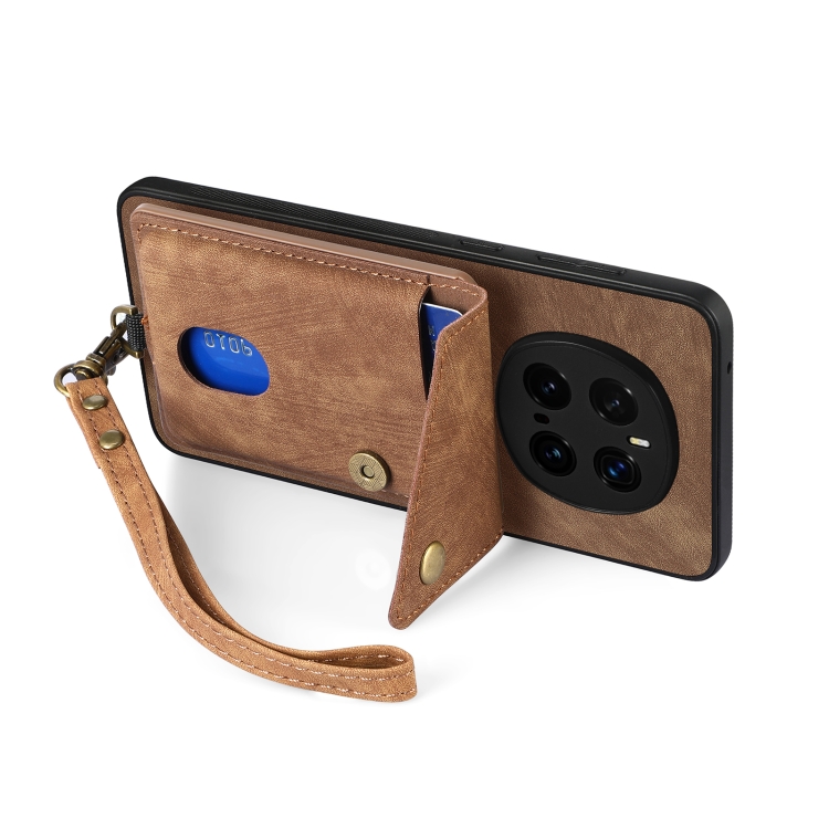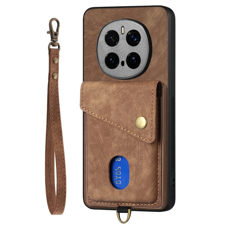 Funda de Cuero Plegable con Correa y Tarjetero para Honor Magic7 Pro (Marrón)