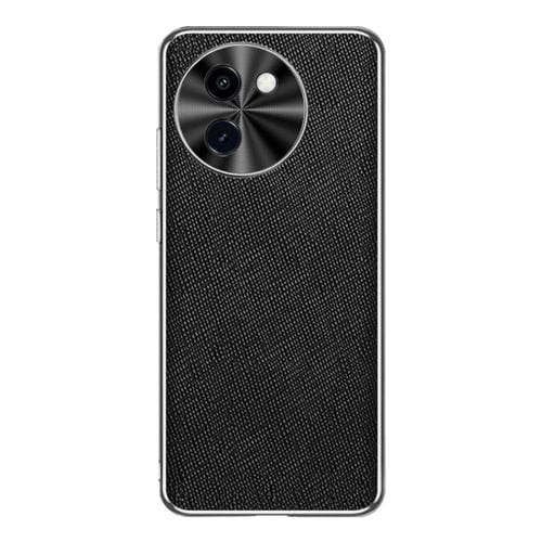 Funda de Cuero Pu con Textura Cruzada y Borde Plateado para Vivo Y200I (Negro)