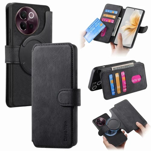 Funda de Cuero Retro Antirrobo con Tecnología Rfid Magsafe para Vivo V40 Lite (Negra)