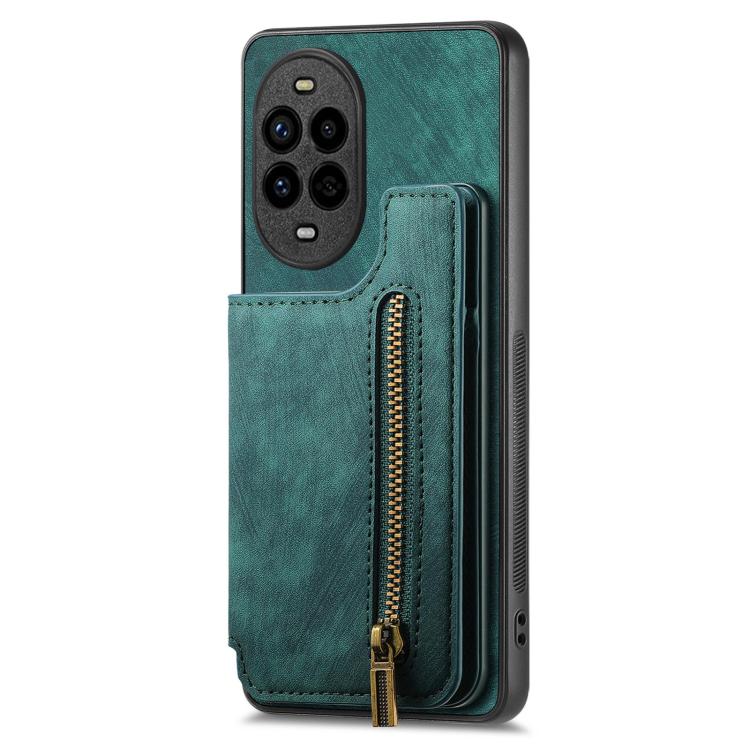 Funda de Cuero Retro con Cremallera para Huawei Nova 13 Pro (Verde)