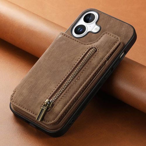 Funda de cuero retro con cremallera para iPhone 17 (marrón)