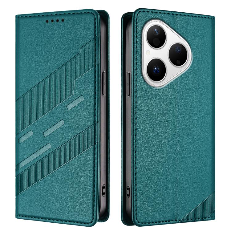 Funda de cuero retro con relieve para Huawei Pura 80 (verde oscuro)