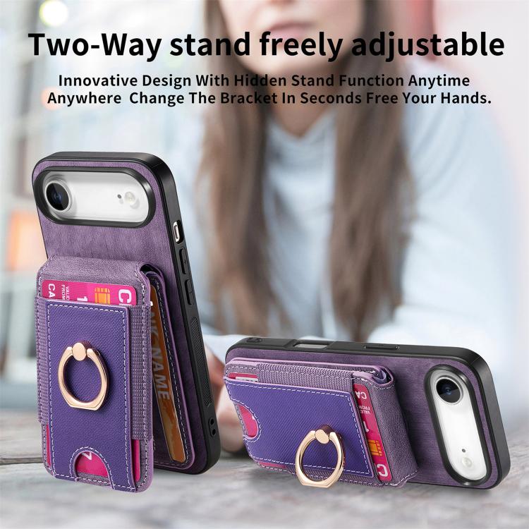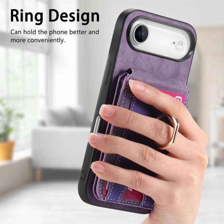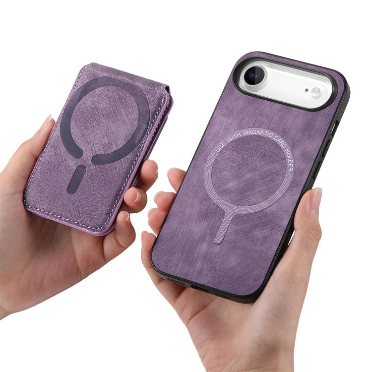 Funda de cuero retro para iPhone Air, con soporte magnético divisible y tarjetero (morado)