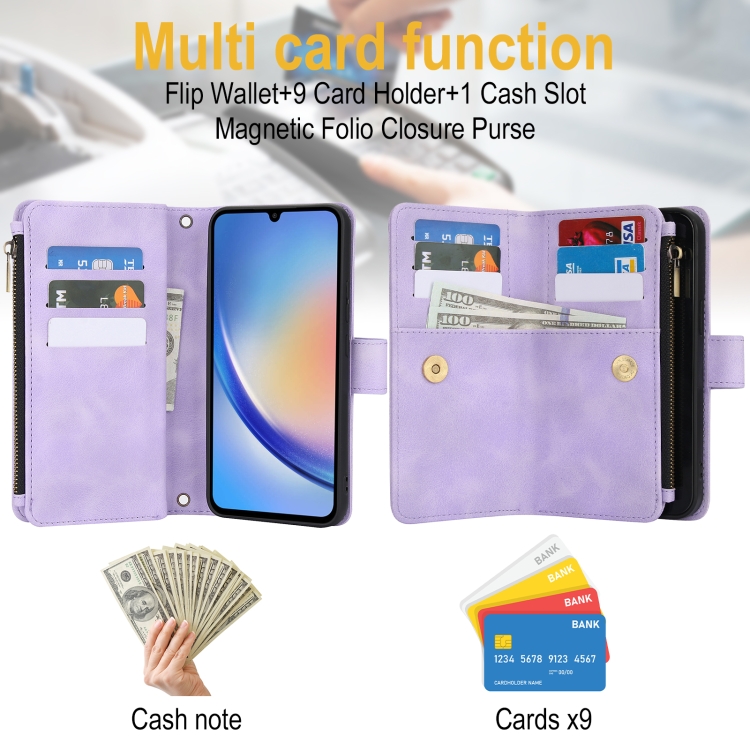 2. Función de billetera multitarjeta: 9 ranuras para tarjetas y 1 compartimento para efectivo con cremallera para guardar sus tarjetas de crédito, efectivo o billetes pequeños para las necesidades diarias.