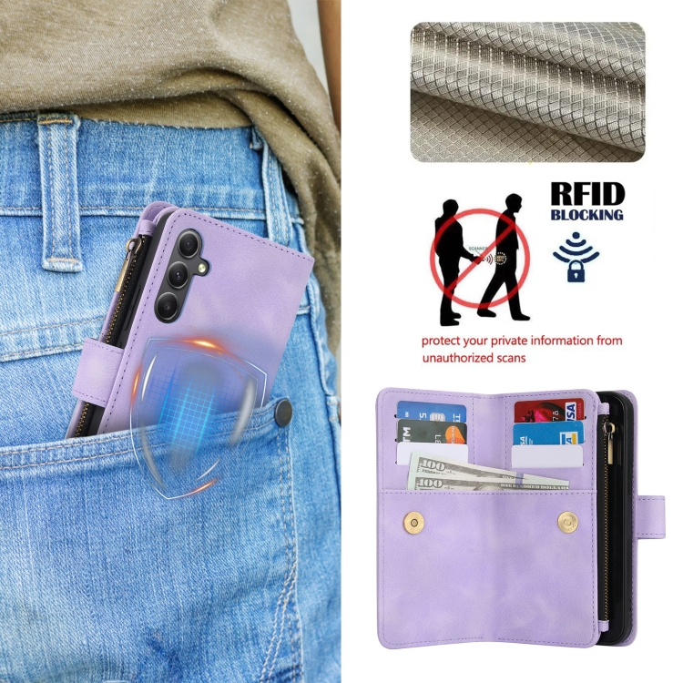 Funda Cuero Rfid Samsung Galaxy A54 5G Dream con Cremallera 9 Tarjetas y Cordón (Morado)