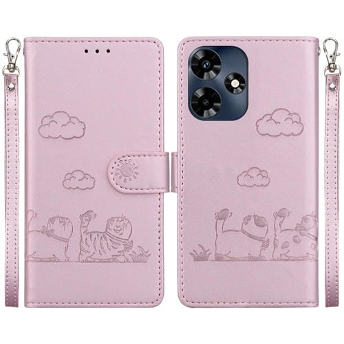 Funda de Cuero Rfid para Infinix Hot 30 4G con Diseño de Gatos (Oro Rosa)
