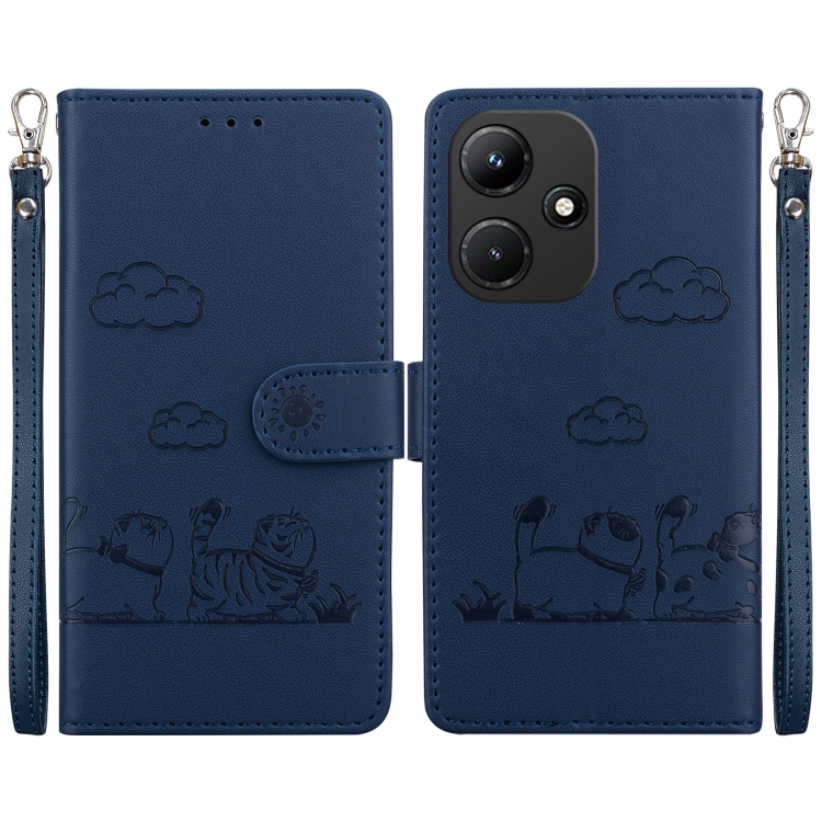 Funda de Cuero Rfid para Infinix Hot 30I con Diseño de Gatos (Azul)