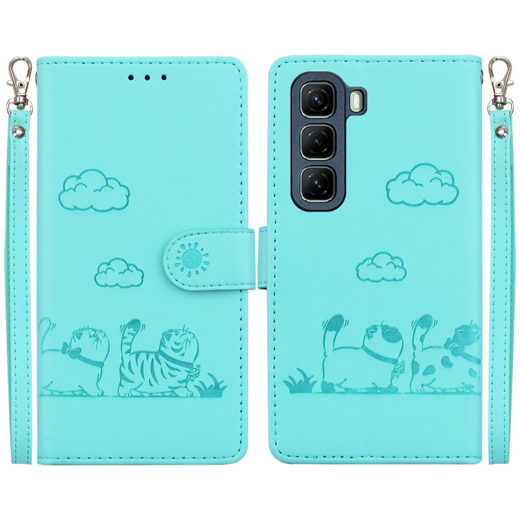 Funda de Cuero Rfid para Infinix Hot 50 5G con Diseño de Gatos (Verde)