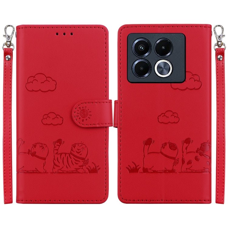 Funda Cuero Rfid para Infinix Note 40 5G con Diseño Gatos (Rojo)