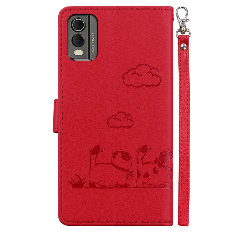 Funda de Cuero Rfid para Nokia C32 con Diseño de Gatos (Rojo)