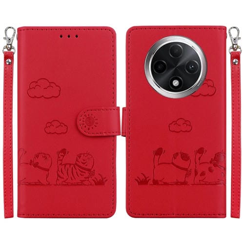 Funda de Cuero Rfid con Diseño de Gatos para Oppo A3 Pro 5G Global (Roja)