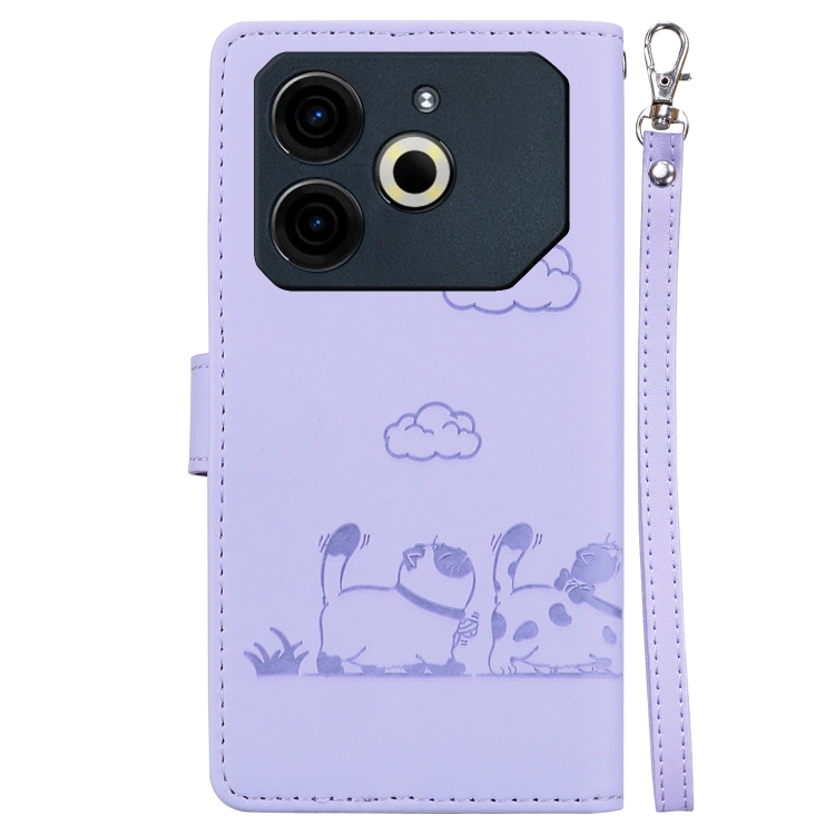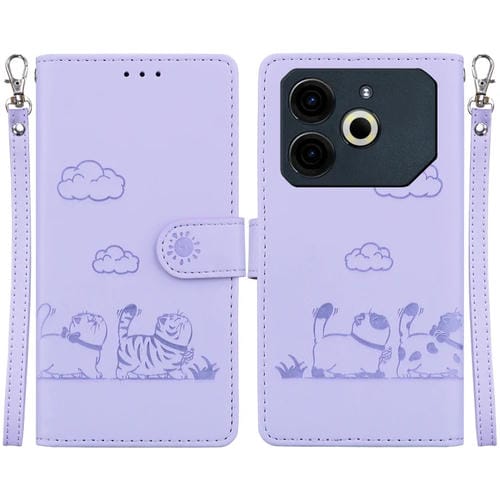 Funda de Cuero Rfid para Tecno Pova 6 Neo con Diseño de Gatos (Morado)