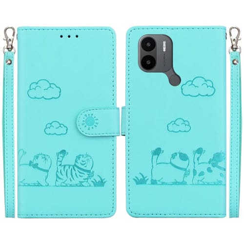 Funda de Cuero Rfid con Diseño de Gatos para Xiaomi Poco C50 (Verde)