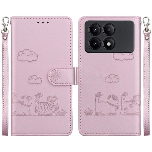 Funda de Cuero Rfid con Diseño de Gatos para Xiaomi Poco X6 Pro (Oro Rosa)