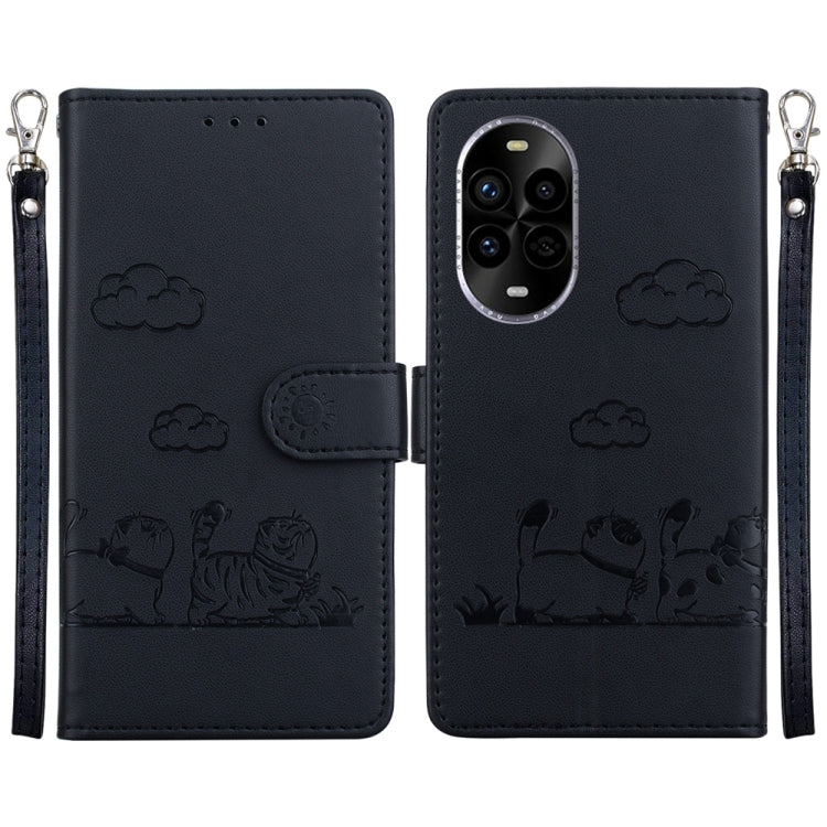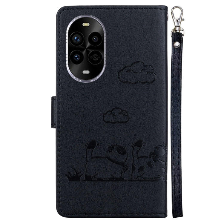 Funda de Cuero Rfid para Huawei Nova 13 Pro con Diseño de Gatos (Negra)