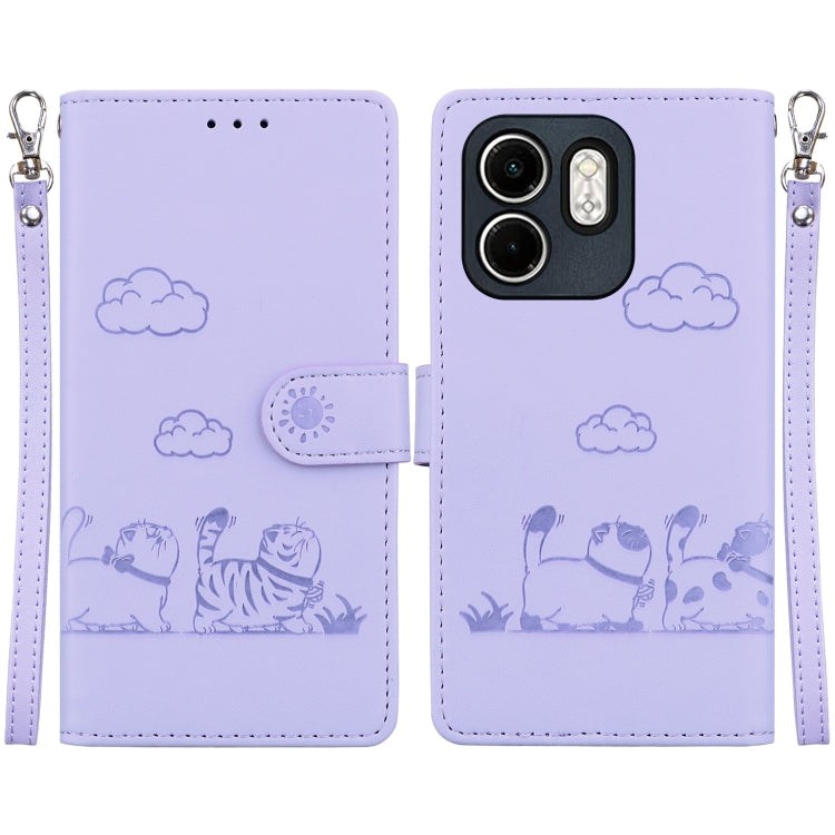 Funda de Cuero Rfid para Infinix Hot 50I y Smart 9 con Diseño de Gatos (Morado)