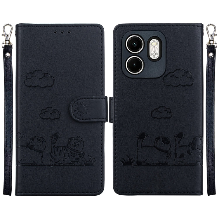 Funda de Cuero Rfid para Infinix Hot 50I Smart 9 con Diseño de Gatos (Negra)