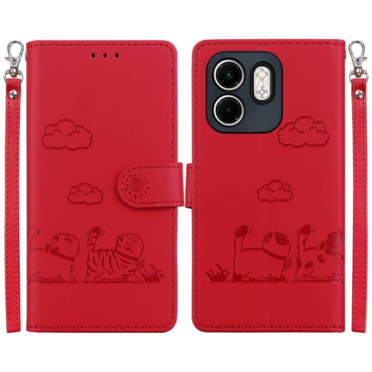Funda de Cuero Rfid para Infinix Hot 50I y Smart 9 con Diseño de Gatos (Roja)