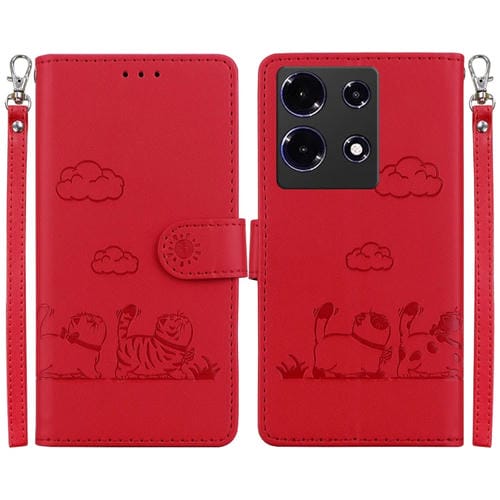 Funda de Cuero Rfid para Infinix Note 30 5G/4G con Diseño de Gatos (Roja)