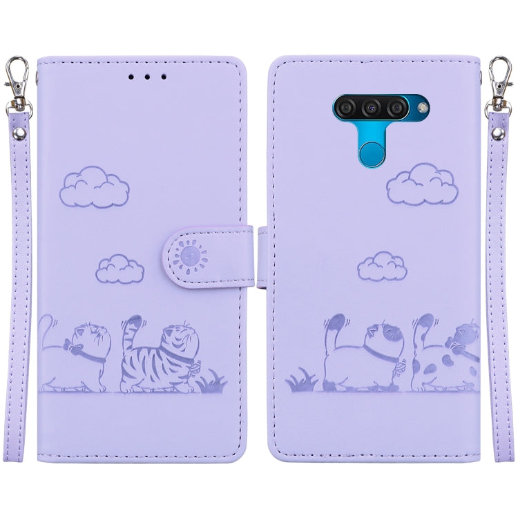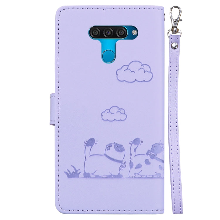 Funda de Cuero Rfid para LG K50/Q60 con Diseño de Gatos (Morado)