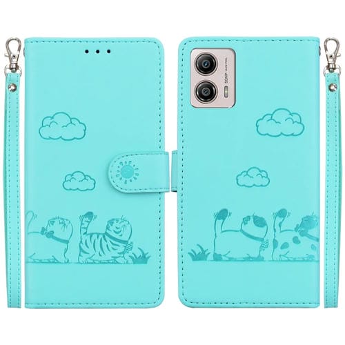 Funda de Cuero Rfid para Motorola Moto G13/G23/G53 con Diseño de Gatos (Verde)