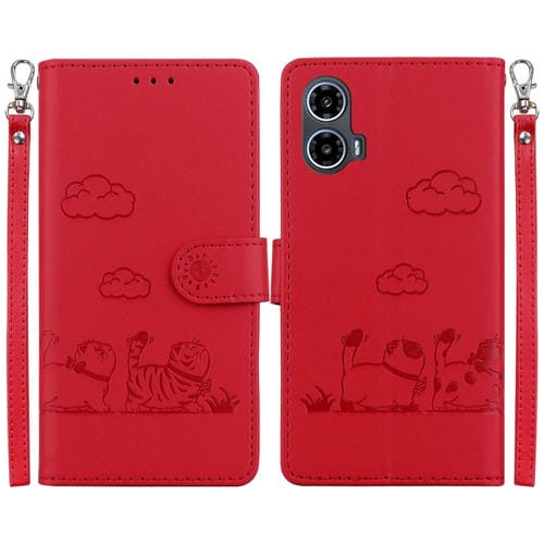 Funda de Cuero Rfid para Motorola Moto G34 5G con Diseño de Gatos (Rojo)