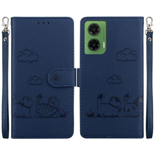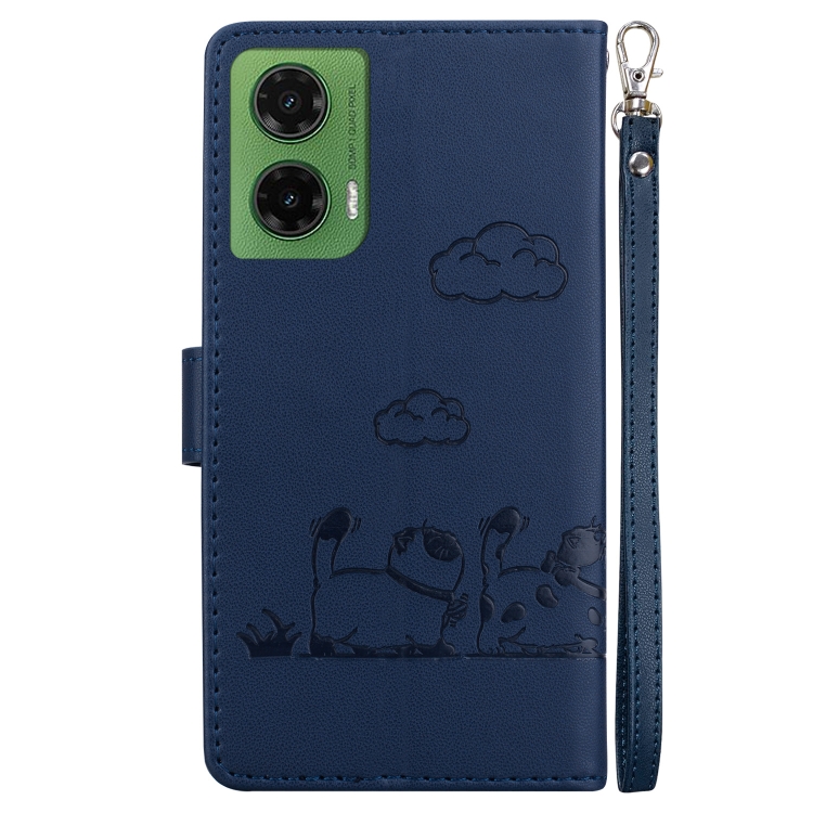 Funda de Cuero Rfid para Motorola Moto G35 con Diseño de Gatos (Azul)