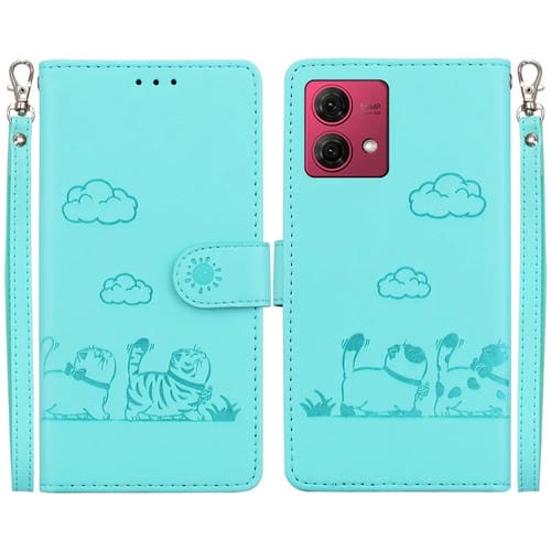 Funda de Cuero Rfid para Motorola Moto G84 con Diseño de Gatos (Verde)
