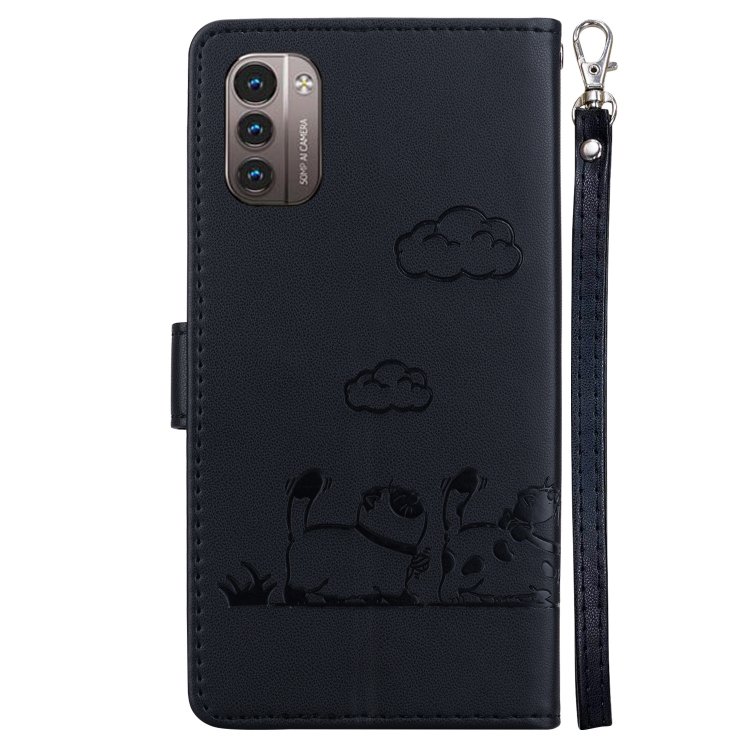 Funda de Cuero Rfid para Nokia G21/G11 con Diseño de Gatos (Negra)