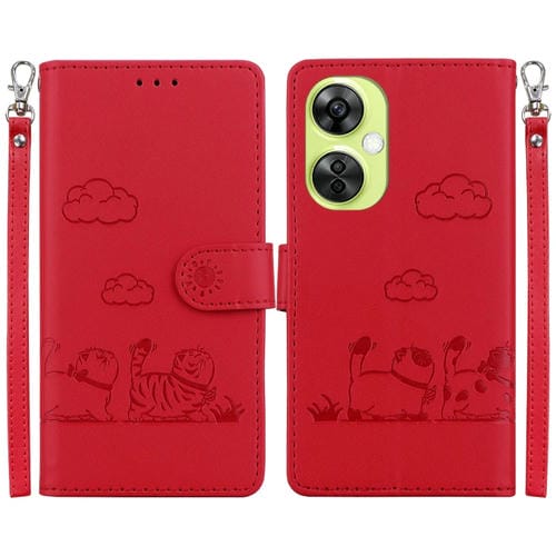 Funda de Cuero Rfid con Diseño de Gatos para Oppo K11X (Roja)