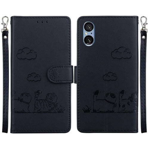 Funda Cuero Rfid Sony Xperia 5 V Diseño Gatos (Negra)
