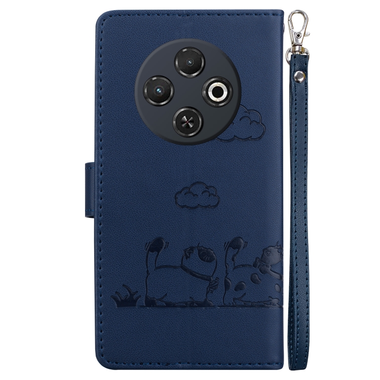 Funda de Cuero Rfid para Tecno Spark 30C con Diseño de Gatos (Azul)
