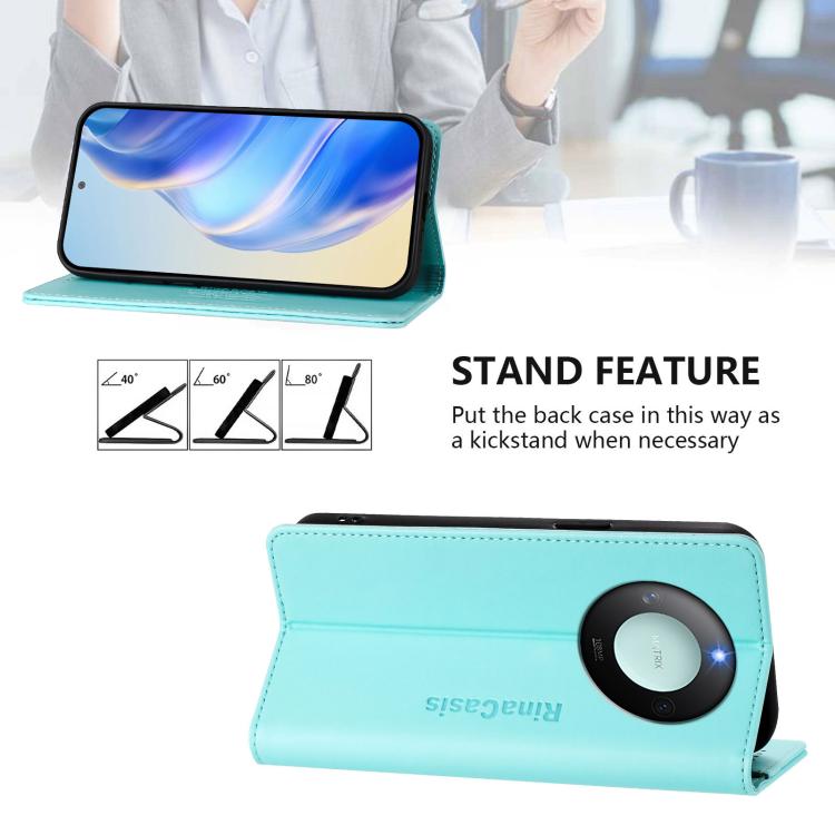 Funda de Cuero Rfid con Doble Pliegue y Succión Magnética para Honor X60/X9C Smart Rc01 (Verde Menta)