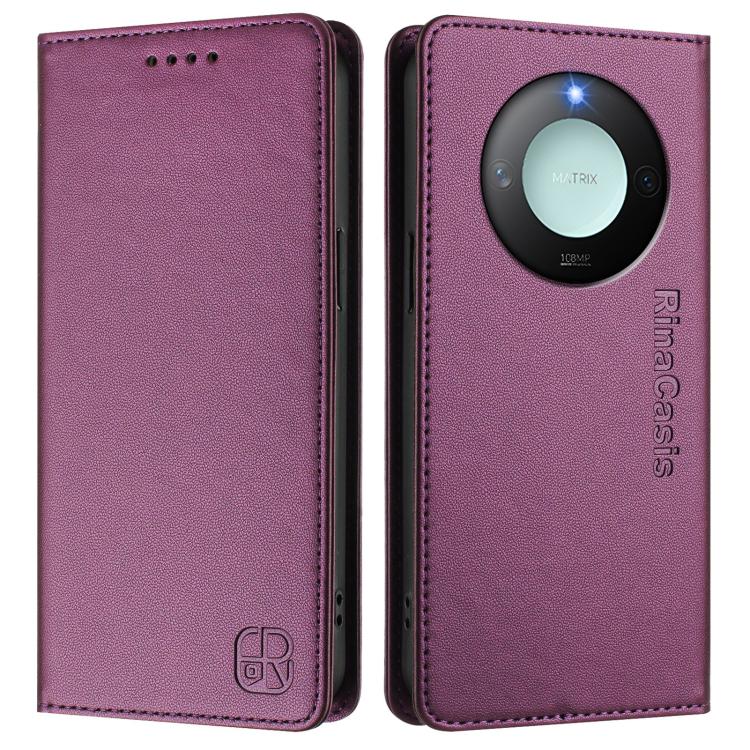 Funda de Cuero Rfid con Doble Pliegue y Succión Magnética para Honor X60/X9C Smart Rc01 (Violeta)