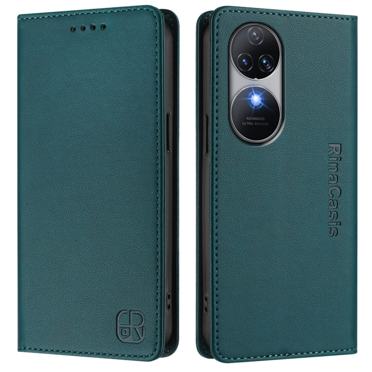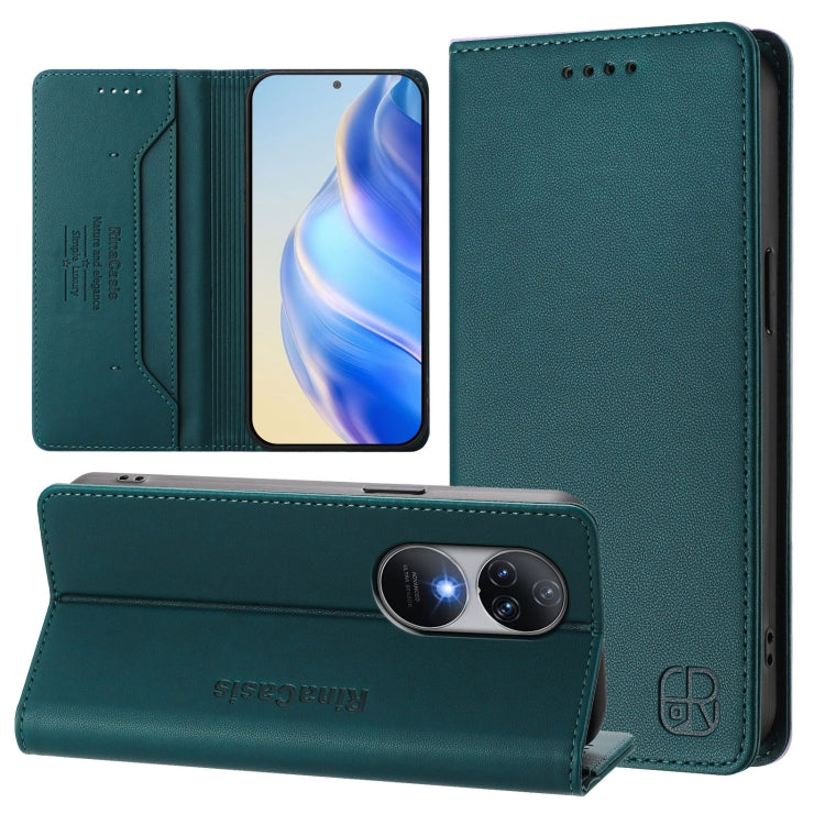 Funda de Cuero Rfid con Doble Pliegue y Succión Magnética para Oukitel C38 Rc01 (Verde Oscuro)