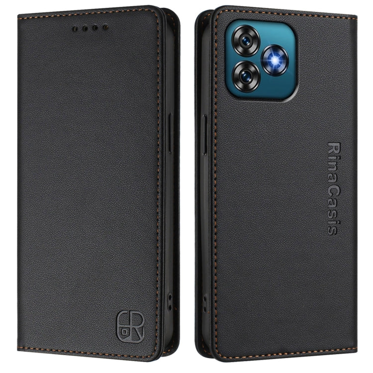 Funda de Cuero Rfid con Doble Pliegue y Succión Magnética para Oukitel C53 Rc01 (Negra)