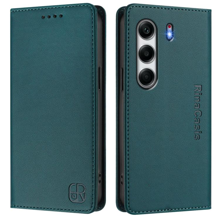 Funda de Cuero Rfid para Tecno Camon 40 4G Rc01 con Doble Pliegue y Succión Magnética (Verde Oscuro)