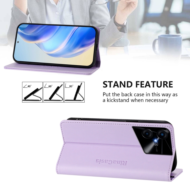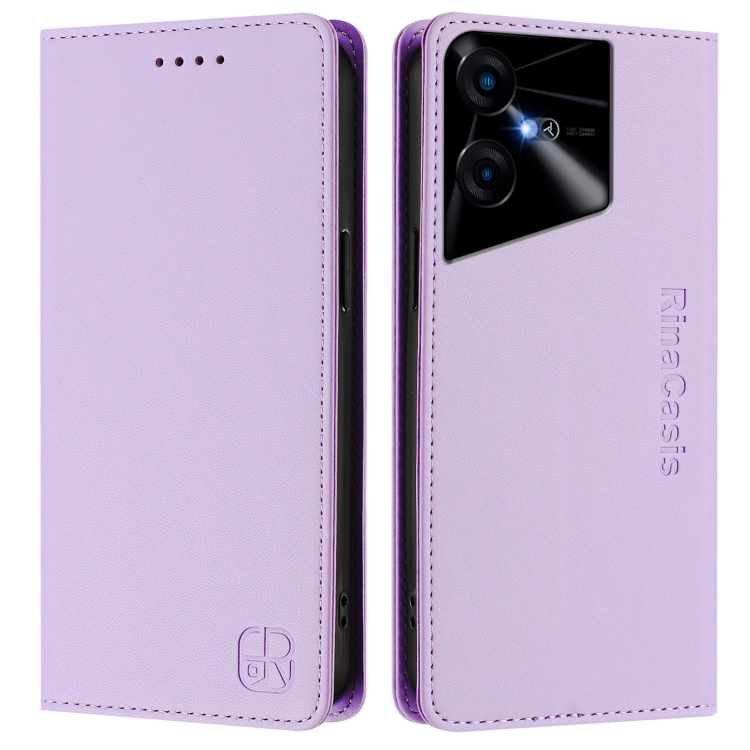Funda de Cuero Rfid para Tecno Pova Neo 3 Rc01 con Doble Pliegue y Succión Magnética (Morado Claro)