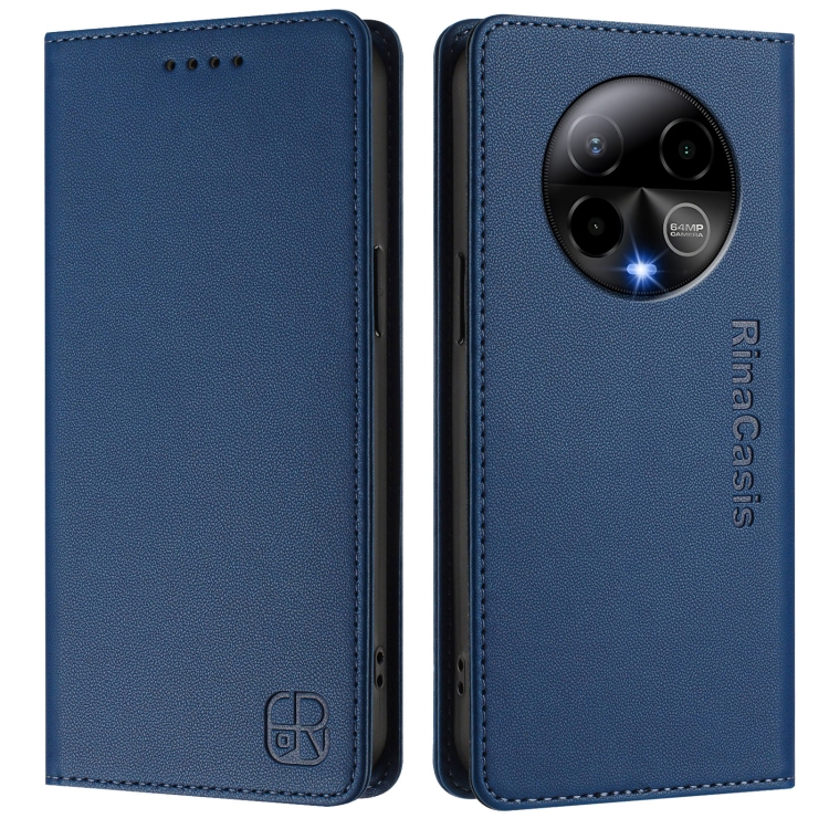 Funda de Cuero RFID Blu Bold K50 RC01 con Doble Pliegue y Succión Magnética (Azul Oscuro)
