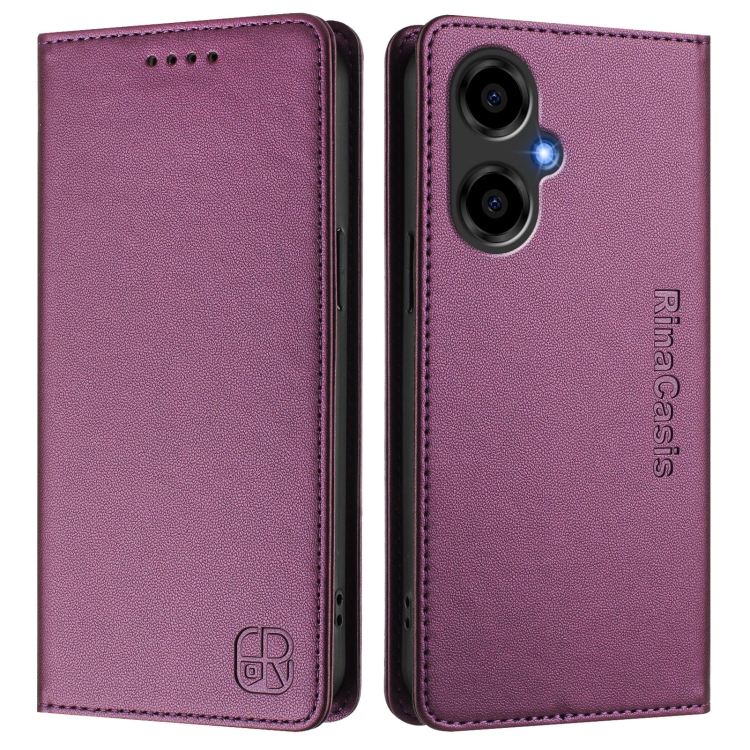 Funda de Cuero RFID para Blu G64 Rc01 con Doble Pliegue y Succión Magnética (Violeta)