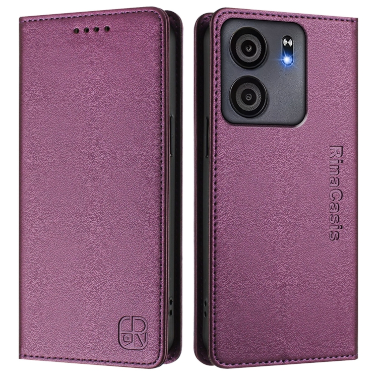 Funda de Cuero RFID con Doble Pliegue y Succión Magnética para Blu View 5 RC01 (Violeta)