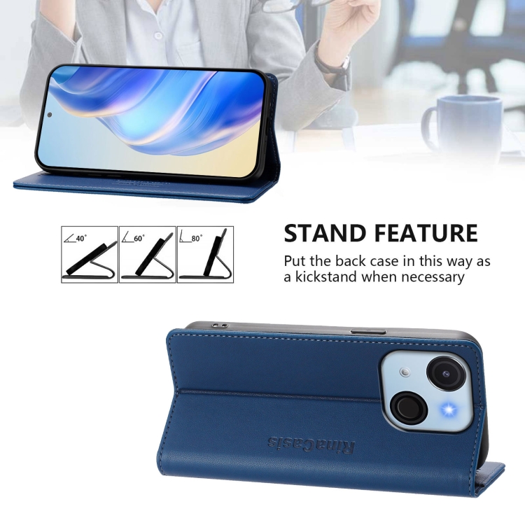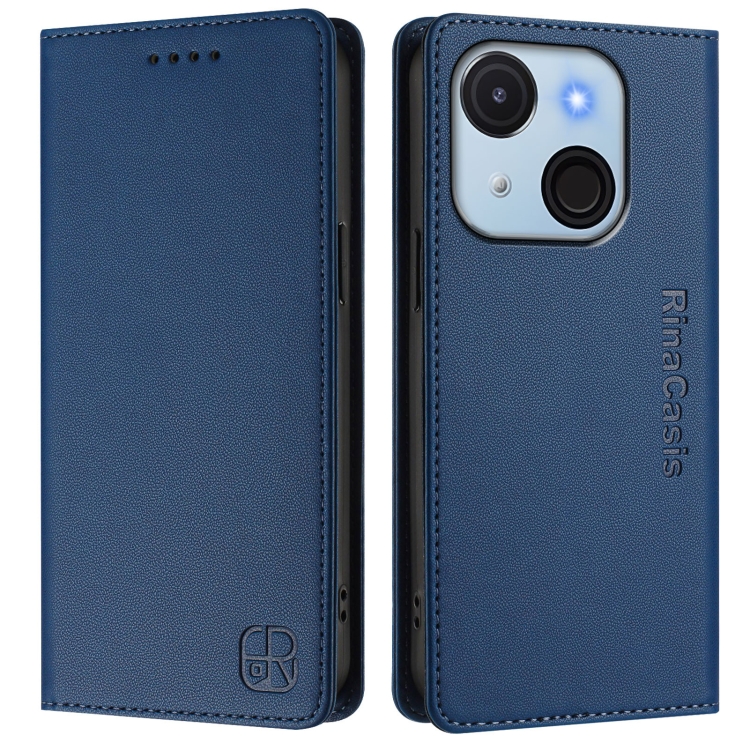 Funda de Cuero Rfid para Teléfono Itel A50C Rc01 con Doble Pliegue y Succión Magnética (Azul Oscuro)