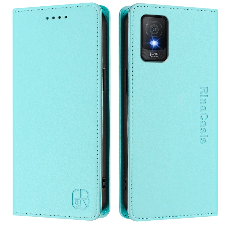 Funda de Cuero Rfid para Teléfono TCL 403 Rc01 con Doble Pliegue y Succión Magnética (Verde Menta)