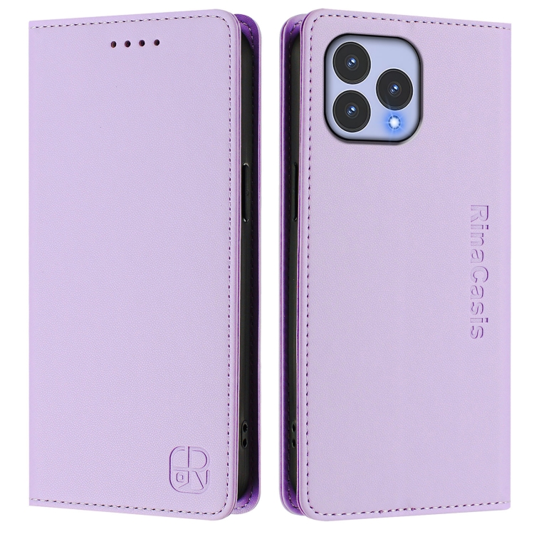 Funda de Cuero Rfid para Teléfono Wiko T60 y Cubot P80 Rc01 con Doble Pliegue y Succión Magnética (Morado Claro)